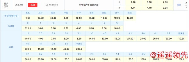 竞彩官方对于新赛季英超揭幕战给出了1.29(利物浦胜)-5.50(平局)-7.50(伯恩茅斯胜)的组合必威体育,对于阵容流失严重的伯恩茅斯做客安菲尔德前景有所看衰。比分竞猜层面,利物浦2-1赢球最低为1赔7.5,利物浦2-0和3-1分别为1赔8和1赔8.5紧随其后,利物浦3-0完胜为1赔9,利物浦1-0小胜和双方1-1战平则分别为1赔10.5和1赔11,整体来看对于拥有萨拉赫的利物浦更为忌惮,看好进攻端有所迭代的利物浦取得赛季开门红。(雪莉)