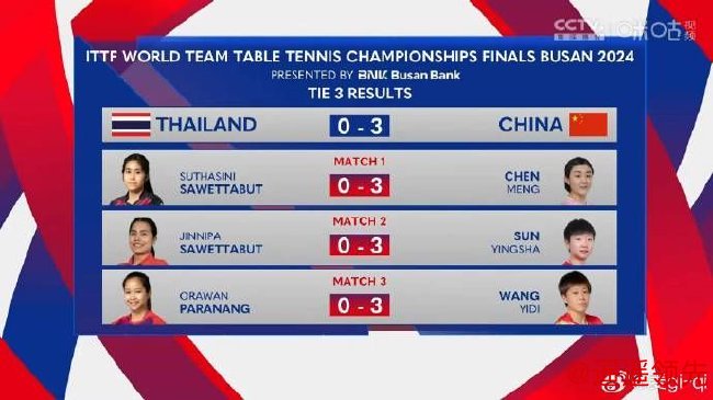 北京时间2月21日,2024年釜山世乒赛团体赛进入淘汰赛阶段。在女团1/8决赛中,由陈梦、孙颖莎和王艺迪组成的中国队,较为轻松地以3-0横扫泰国队,豪取本届世乒赛五连胜betway必威,晋级八强。